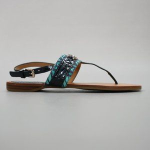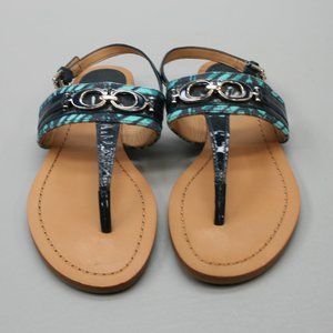 Coach Ladies 6.5 B Sammy Thong Turquoise Blue Zebra Ankle Strap Sandals - A0896