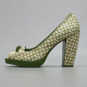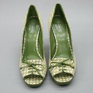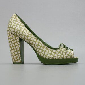 Coach Ladies 8 Corey Green Logo Signature C Platform Shoes Heels Peep-toe Pumps