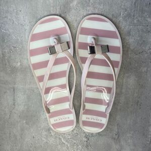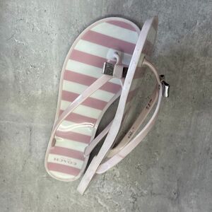 Coach Landon Pink White Stripe Jelly Bow Thong Flip Flop Sandals Women Size 8B