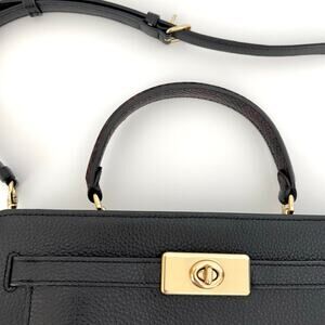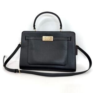 Coach Lane Carryall Top Handle Bag Satchel Tote Pebble Leather Black C8211