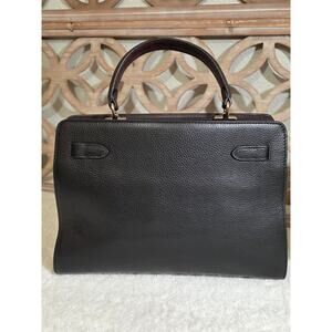 Colorblock Lane Carryall by Coach. Black and mahogany pebbled leather with gold hardware. Long strap is adjustable and removable.