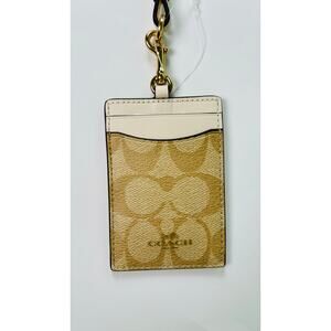 Coach Lanyard, Ivory and Tan signature logo, gold, light khaki and chalk. ID window with 2 credit card slots on back.  New with tags. Strap has 15in drop.