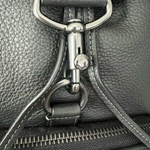 Signature coated canvas and refined pebble leather Inside zip, cell phone and multifunction pockets Inside laptop sleeve