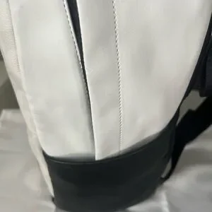 Elevate your style with this sleek white and black backpack. Perfect for daily use, it combines functionality with a modern design.