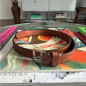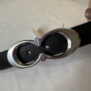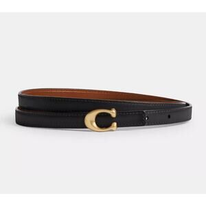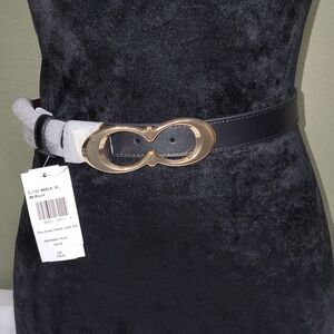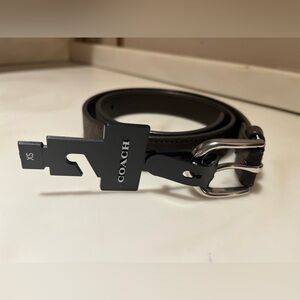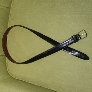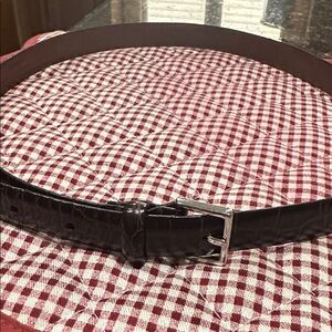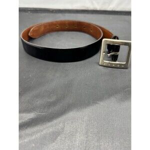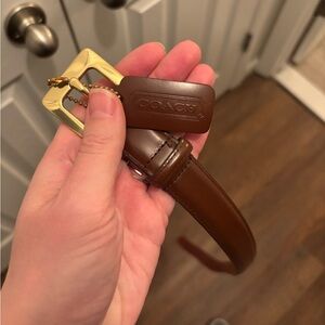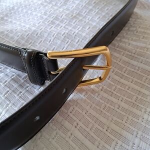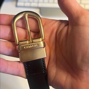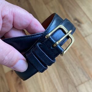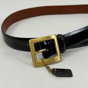 Coach, Large Black Leather Belt w/ Gold Buckle