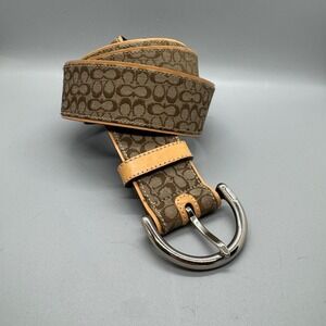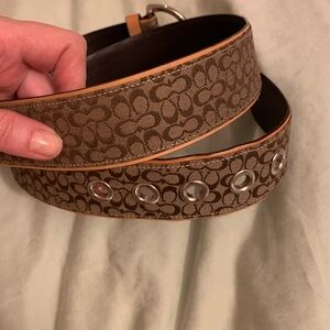 Coach, Large Black Leather Belt w/ Gold Buckle.