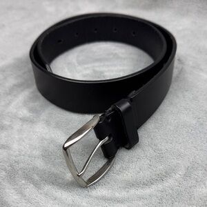 Sleek black belt with a stylish gold buckle. Ideal for versatile wear.
