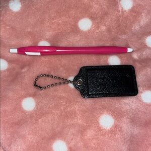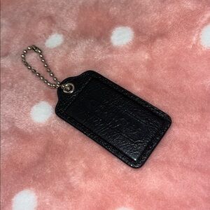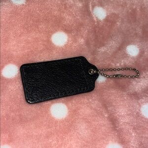 Large Coach pebbled leather bag tag in black. Features a durable ball chain. Good for replacing lost tags or adding to your favorite Coach bag