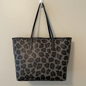 Ocelet Leopard Print Coated Canvas Shoulder Bag Gray