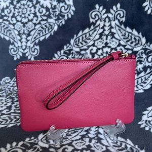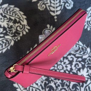 Coach Large Corner Zip Wristlet Gold/Strawberry Haze