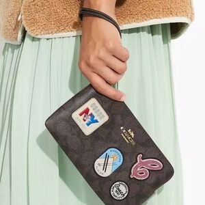 Coach Large Corner Zip Wristlet In Signature Canvas w/ Ski Patches - CF457 NWT