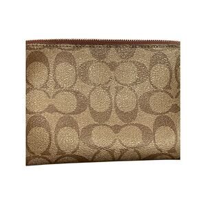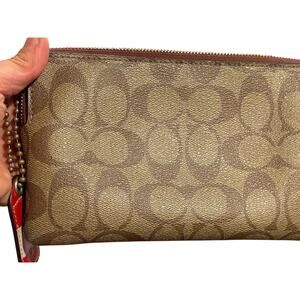 Coach Large Corner Zip Wristlet / Wallet Signature Canvas CS438 IM/Khaki Saddle