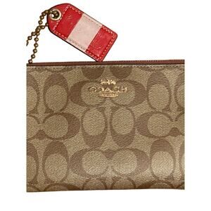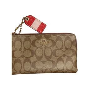 New Coach Large Corner Zip Wristlet / wallet Signature Canvas CS438 IM/Khaki Saddle