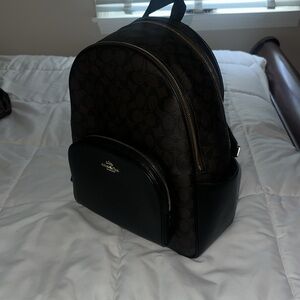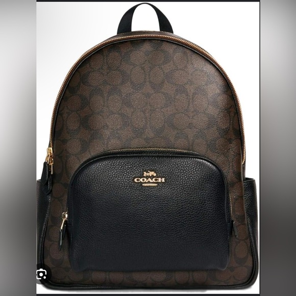 Stylish and functional, this Coach large court backpack in signature brown is perfect for everyday use. There are two water bottle compartments on the side and is in excellent condition.