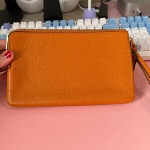 Barely used, has a slight ink stain on the front from storage in a drawer. No visible scratches or heavy wear. Stored bills occasionally in this wallet.