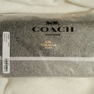 Coach signature coated brown canvas and smooth black leather large fold over wristlet.