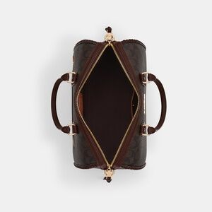 Coach Large Rowan Fringe Satchel Bag In Signature Canvas CCE36 NEW NWT - Signature coated canvas and smooth leather - Inside snap and zip pockets - Zip closure fabric lining - Handle with 4 1/2 drop - Outside zip pocket l - Detachable strap with 20” drop for shouldering or crossbody wear - Dimensions: 11 3/4 (L) x 8 1/4 (H) x 7 (W) - Style No. CCE36 - Condition: New with tags in factory packaging