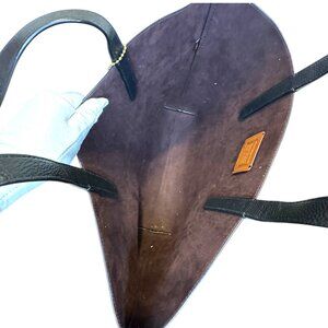 Coach black leather musical penguin large tote is in excellent new stored condition. Super cute penguins playing horns on black leather with black leather straps and blue gray matching hangtag. Inside is a dark chocolate brown suede material. Nice big Great size for everything you need and could fit a small laptop. \\