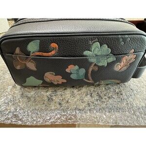 Brand New Condition Coach toiletry bag with a "Dreamy Leaves" pattern on black pebbled leather.