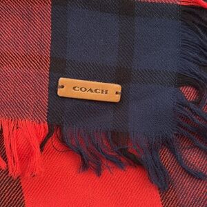 Excellent condition. 54 inch and fringed. Coach 100% wool plaid scarf.