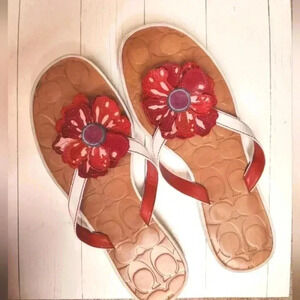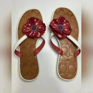 Coach Larisa Leather Embossed Logo Flower Sandals
