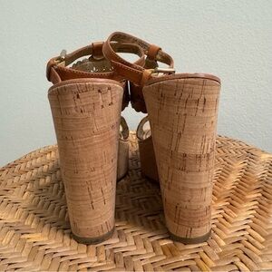 Poor Condition Size: 7 Sole is separating from wedge Leather shows wear Gold decor is cracking