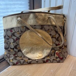 Coach Laura Admirer Multi Gold Jacquard Signature Hearts & Dots Tote Bag