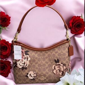 Coach Laurel Shoulder Bag In Signature Canvas With Rose Print Crossbody Purse