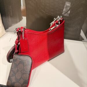 Coach Laurel Small Shoulder Bag Mirror Charm And Pouch CBI06 Dark Cardinal/Walnu