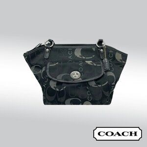 Coach Leah Black and Silver Signature Turnlock Satchel