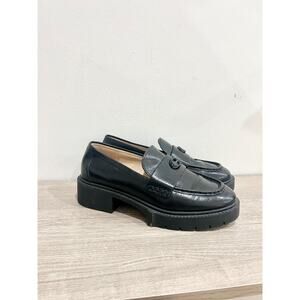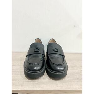 Coach Leah Chunky Lug Sole Leather Loafer with C Black Women's Size US 7.5