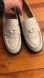 Elegant cream loafers featuring a sturdy black sole. Perfect for both casual and formal occasions.