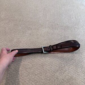 Coach Leather Belt Size 36 Dark Brown with Contrast Stitching Nickel-tone Hardware Masculine Minimal Italy