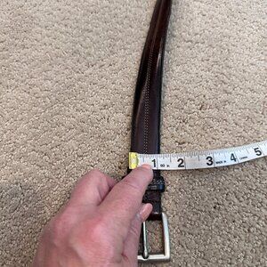 Coach Leather Belt Size 36 Dark Brown with Contrast Stitching Nickel-tone Hardware Masculine Minimal Italy