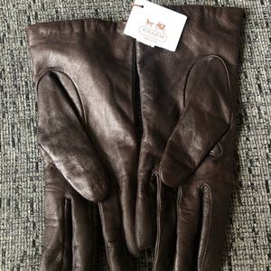 Brand new, never worn (except for modeling), leather cashmere-lined gloves. A little darker on the palm side (see photos) having been kept on a shelf with sunlight (apparently, lightened the top side a bit). Still amazing and cannot even tell while worn.