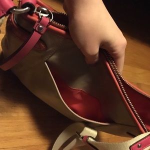 Coach Leather Crossbody Bag (Cream w/ Pink accent)