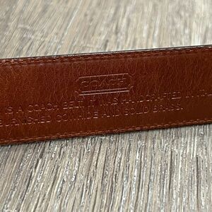Coach Leather Dark Brown 34” Brass Buckle Staple Dress Belt Italian Leather