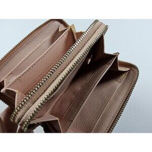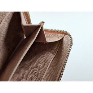 Pre-owned condition. The inside leather has cracking and peeling, especially on the side folds. Measures approximately 4.5x2.5. Please see photos for detailed condition.