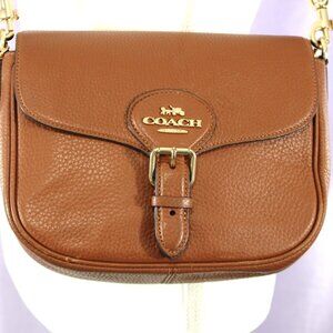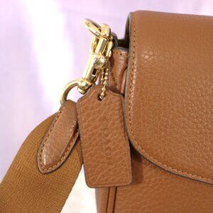 Coach Leather Flap Crossbody Saddle Brown Adjustable Strap