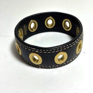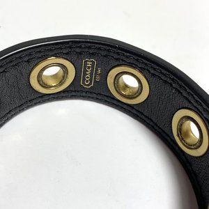 Coach Leather Grommet Bangle Stackable Bracelet Black with Gold Hardware NEW