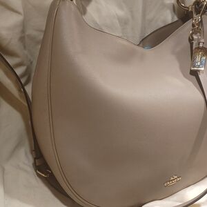 Elevate your style with the Coach Gray nomad Leather Hobo Bag. Perfect for any occasion, this elegant bag combines functionality with timeless design. 14x12 in size, removable and adjustable shoulder strap, in EUC, dust bag included, snap to close, lots of room in this large hobo bag, from a smoke free home