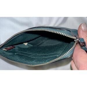 Coach Leather Horse And Carriage Zip Wristlet Forest green