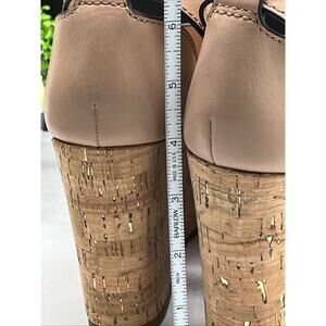 The Coach Leather Isla Metallic Wedge Sandal in size 6 is a stylish and elegant shoe perfect for weddings and parties. With a colorblock pattern and ultra-high wedge heel, this sandal features a buckle closure and is made of luxurious leather. The dusty gold/beechwood color, along with the designer logo and metal accents, adds a touch of luxury to any outfit. The B width ensures a comfortable fit, making it a must-have addition to any woman's shoe collection.