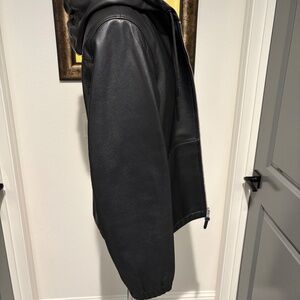 @as0031 I uploaded a new pic with the material descriptions. Jacket is Lamb Leather and trim is Cow Leather. This Jacket is brand new and I have only worn it a few times in nice weather.