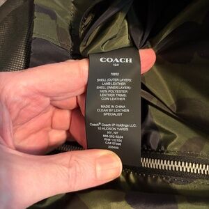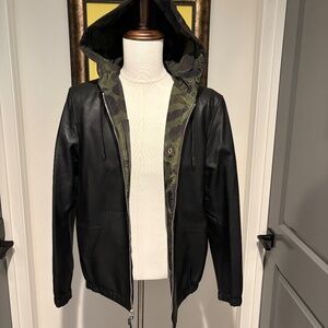 Coach Leather Jacket - Reversible and only worn a few times. Timeless black leather on one side and modern green deconstructed camo on the other. Leather is in pristine condition and very soft to the touch.