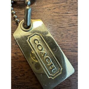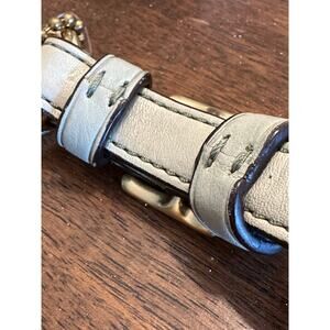 Beautiful sage green genuine leather strap with accents of brass COACH and tag with functional clip. No signs of wear