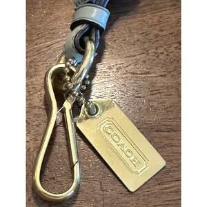 Coach Leather Keychain Brass lanyard wristlet Small Tag Wrist Strap green blue