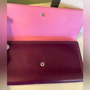 Coach Leather Long Tri-Fold Purple/Plumb and pink Wallet