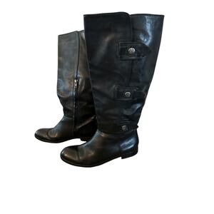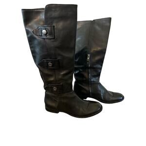 Coach Leather MAPLE Knee High Riding Boots Black Button Strap & Zipper