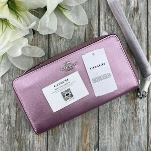 Coach Leather Metallic Pink Long Zip Around Wallet Bag Purse